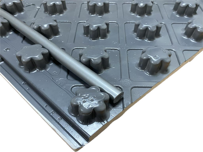 При монтаже теплого пола в вашем доме незаменимы современные маты с бобышками. Практичные маты выполнены из пенополистерола (пенопласта), который не допускает потерь тепла. Дополнительными свойствами плит является повышенная изоляция звука и шума (волны «теряются» в акустическом лабиринте). Оснащение матов с бобышками покрытием в виде пленки толщиной в 0,18 миллиметров защищает от действия влаги. Поверхность мата имеет выступы-бобышки высотой в 20 миллиметров. Такой инженерный ход позволяет уложить нагревательную трубу в различных направлениях под разным углом без дополнительных приспособлений. Для облегчения монтажа плиты предусмотрительно нанесена разметка. Самоцентрирующиеся замки гарантируют точное соединение матов между собой.